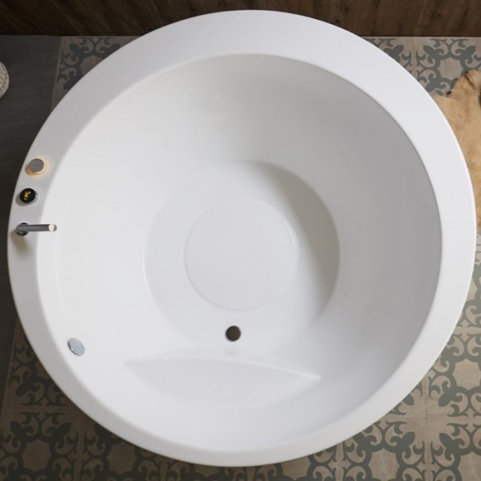 The high-gloss white surface of this tub is consistent throughout in thickness- not painted on- and will not fade or lose its brilliance over time. To top off this ideal package, the Pamela is also available in a Relax version with air massage and сhromotherapy systems. A lovely circular bath that is generous in proportion all round, Pamela gently widens from its 43.75" interior bottom to its 58.25" top. Not only is this bath spacious in dimensions, it is also one of the deepest bathtubs at 20.5", for maximum soaking pleasure equally suited to sharing or self-indulgent pampering. The subtly curving walls reflect our focus on ergonomic engineering to best fit the human form.