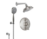 California Faucets carried Miramar's sleek transitional style in to the shower. Consistent with their goal to give you what you want, California Faucets offers a large selection of shower controls. This includes both pressure balance and thermostatic. The thermostatic is offered as a 3/4" control which requires separate stop controls (volume controls). With their StyleTherm thermostatic the connections are 1/2" with choice of integral diverter or volume controls. Look for CALGreen for water conservation selections.