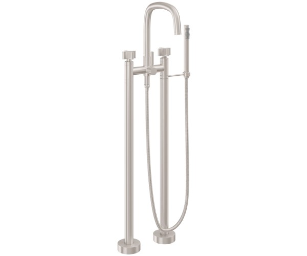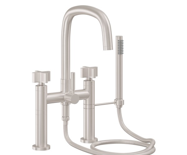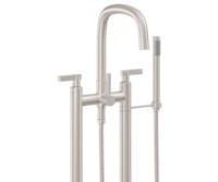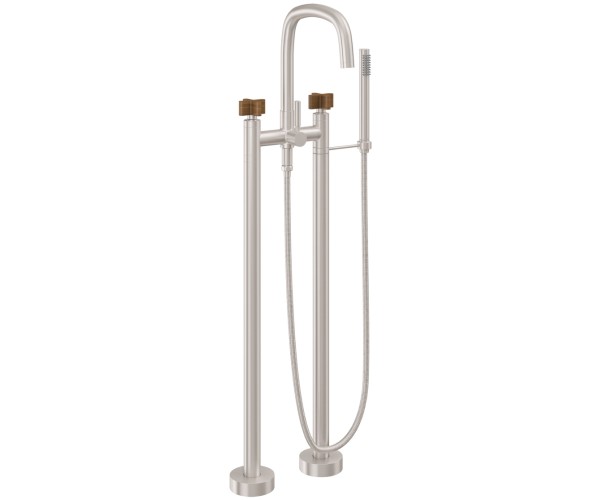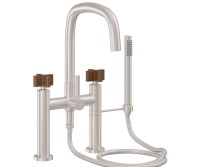 California Faucets' San Elijo bathroom faucet series offers tub fillers with the natural warmth of teak combined with modern design. Find roman tub faucets and bridge style for deck mounted faucets. Plus wall mounted and freestanding tub filler options. This contemporary sink faucet line is available with both teak and solid brass cross or lever handles. There is also 2 styles of spouts offered and the custom options don't end there! California Faucets carries 26 artisan finishes and you can have two finishes on 1 faucet.