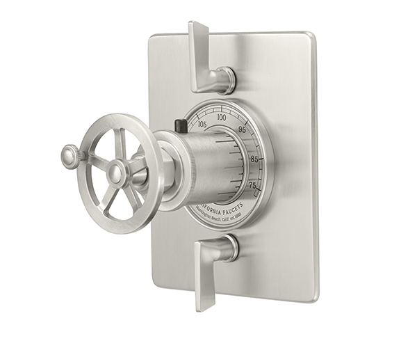 Consistent with their goal to give you what you want, California Faucets offers a large selection of shower controls. This includes both pressure balance and thermostatic. The thermostatic is offered as a 3/4" control which requires separate stop controls (volume controls). With their StyleTherm thermostatic the connections are 1/2" with choice of integral diverter or volume controls. Look for CALGreen for water conservation selections.