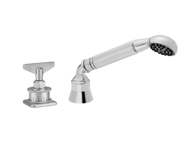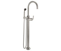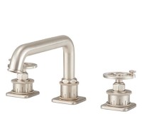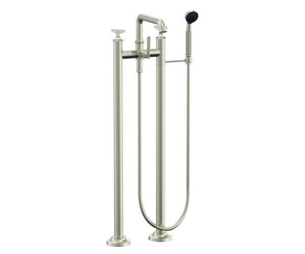 California Faucets' Steampunk Bay bathroom series offers tub fillers with industrial styling. Find roman tub faucets that are offered with a low or high spout option and bridge style tub faucets also for the tub deck. There are 4 styles of floor mounted tub faucets and wall mounted tub fillers. All are available in 26 artisan finishes, including 12 PVD finishes, the most durable finish available. This faucet series' industrial style lends a touch of period timelessness for a memorable bathroom. Blade, lever and wheel handles control the water with ease, precision and style.