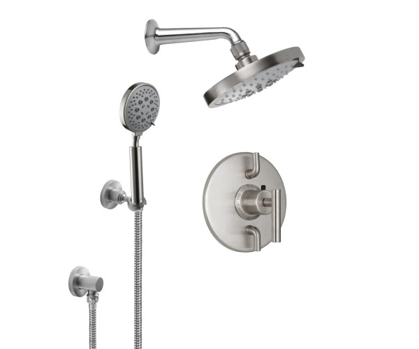 A high-profile contemporary design that defines the modern bath environment, the Tiburon series has shower controls and accessories. Find or create the perfect shower. Consistent with their goal to give you what you want, California Faucets offers a large selection of shower controls. This includes both pressure balance and thermostatic. The thermostatic is offered as a 3/4" control which requires separate stop controls (volume controls). With their StyleTherm thermostatic the connections are 1/2" with choice of integral diverter or volume controls. Look for CALGreen for water conservation selections.