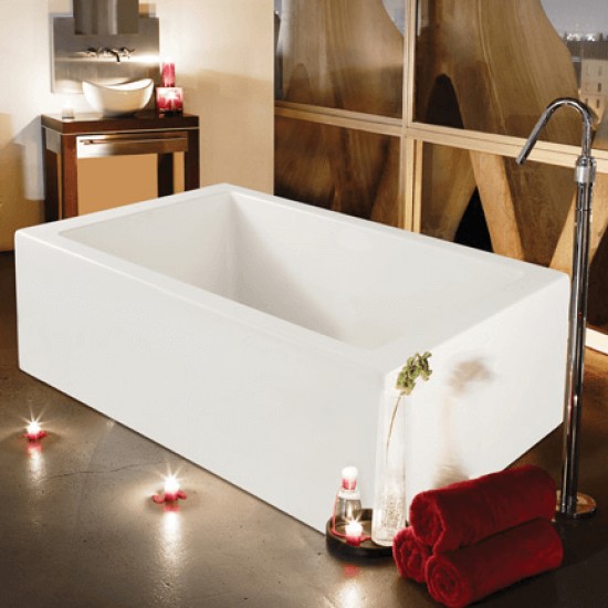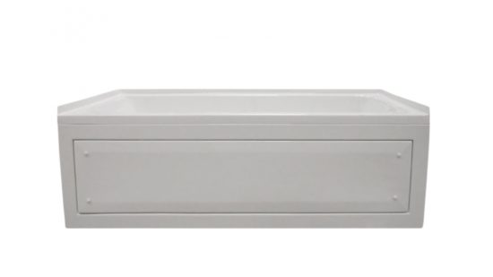 installed alternative to tile or marble installation. Adds approximately 2" to framing height dimension. Available 60", 66" & 72" factory installed. No access on soaking tub only. This skirt can be added to any rectangular tub without a detail edge.