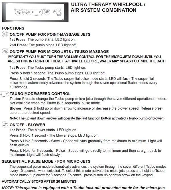 MTI offers different controls to run the various whirlpool systems. Instruction manual will give more information
